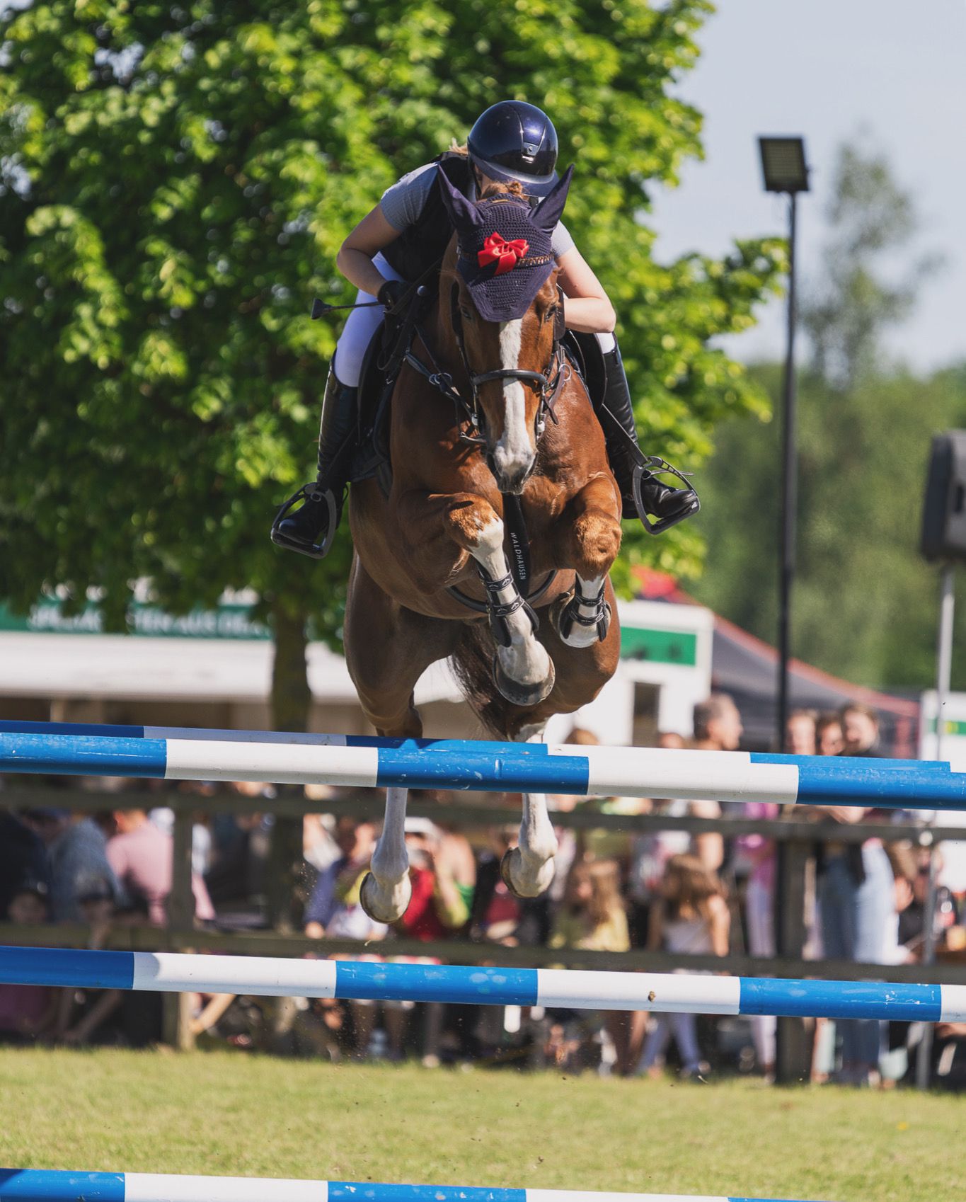 Die Schleife ist nicht nur schick, sondern auch äußerst praktisch, da sie sich nicht öffnen lässt und immer an ihrem Platz bleibt. Egal ob beim Springreiten, Vielseitigkeitsreiten, Dressur oder beim Freizeitreiten – mit dieser Schleife sind Sie immer gut ausgestattet.